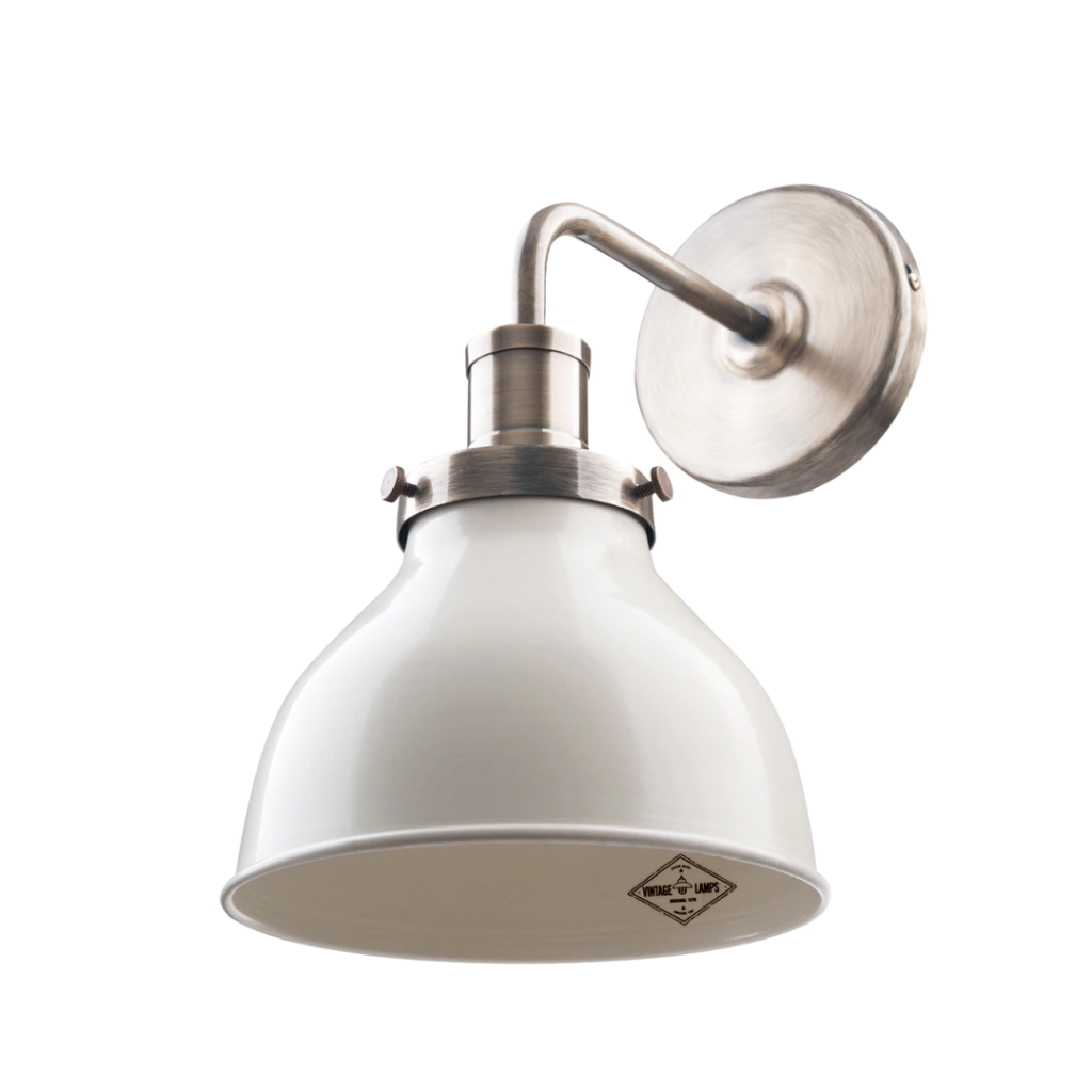 Aplique de pared construido en acero pintado en polvo horneado 200º. Brazo, base y capuchón superior en bronce viejo. Portalámpara E27.