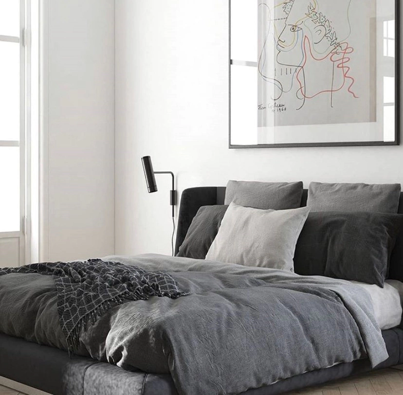 Aplique de pared tubular de aluminio direccionable ideal para lectura y respaldos de cama.